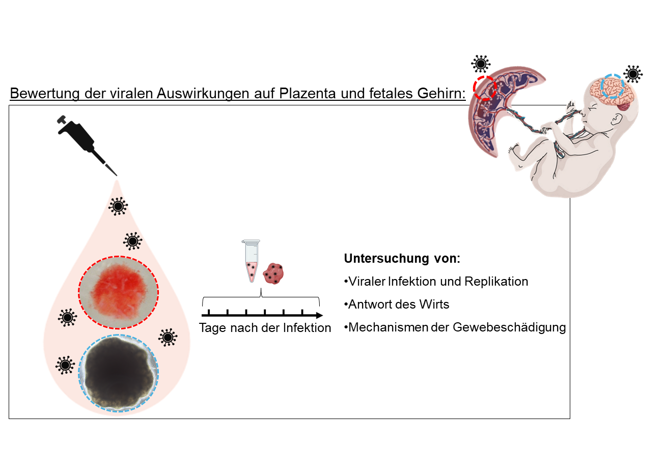 Per le donne incinte e i loro feti le infezioni virali contratte durante la gravidanza aumentano il rischio di complicazioni, aggravando i sintomi indotti dal virus, aumentando i tassi di aborto spontaneo e provocando potenziali danni allo sviluppo del feto, in particolare del cervello. Agendo come una barriera essenziale durante la gravidanza, la placenta svolge una serie di ruoli cruciali, tra cui l'apporto di nutrienti, lo scambio di gas e la regolazione immunitaria locale. Tuttavia, la sua funzione protettiva può essere compromessa quando le infezioni virali causano una viremia nelle donne incinte. In questi casi, il virus, presente nel sangue, può attraversare la barriera placentare, mettendo potenzialmente a rischio il feto e, come menzionato più sopra, portare a disturbi, per esempio dello sviluppo del cervello. Per capire i processi coinvolti occorrono modelli umani in vitro che riproducano fedelmente le infezioni virali nel tessuto placentare e cerebrale del feto. Nel nostro caso, abbiamo impiegato modelli sofisticati come gli espianti di placenta umana e gli organoidi cerebrali per studiare le infezioni da SARS-CoV-2, virus del Nilo occidentale (WNV) e virus Zika (ZIKV), i quali ci hanno permesso di analizzare il tropismo cellulare, la propagazione virale e la caratterizzazione delle risposte dell’ospite all’infezione.