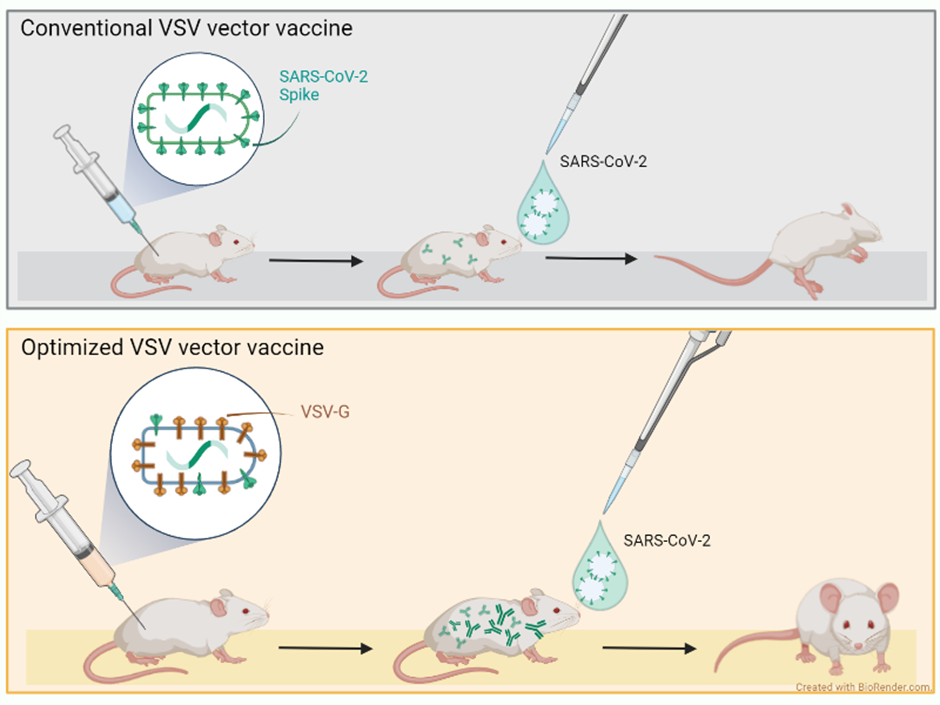 Numerosi progetti di ricerca per lo sviluppo di vaccini contro SARS-CoV-2 sono stati avviati in risposta alla pandemia. In una recente pubblicazione su «npj vaccines», rivista del gruppo «Nature Portfolio», i team di ricerca dell’Istituto di Virologia e Immunologia (IVI) e dell’Università di Berna descrivono i risultati di un vaccino sperimentale contro la COVID-19 che usa il virus della stomatite vescicolare (VSV) come vettore virale. Il lavoro svolto dimostra che nei topi l’immunizzazione intramuscolare con vaccini COVID-19 basati sul vettore VSV induce forti risposte anticorpali contro la proteina spike del SARS-CoV-2 solo se il vettore è integrato con la glicoproteina G del VSV.